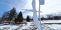 Installed in 2019 Rise represents a Great blue heron a bird native to this area, a beluga whale and the white pond lily that surrounds the island in July and August. The white finish references the nearby Minto Bridges that join Maple Island with Green Island to the mainland via Union Street. The base of the sculpture shows a sound wave pattern, engraved using the Algonquin language.